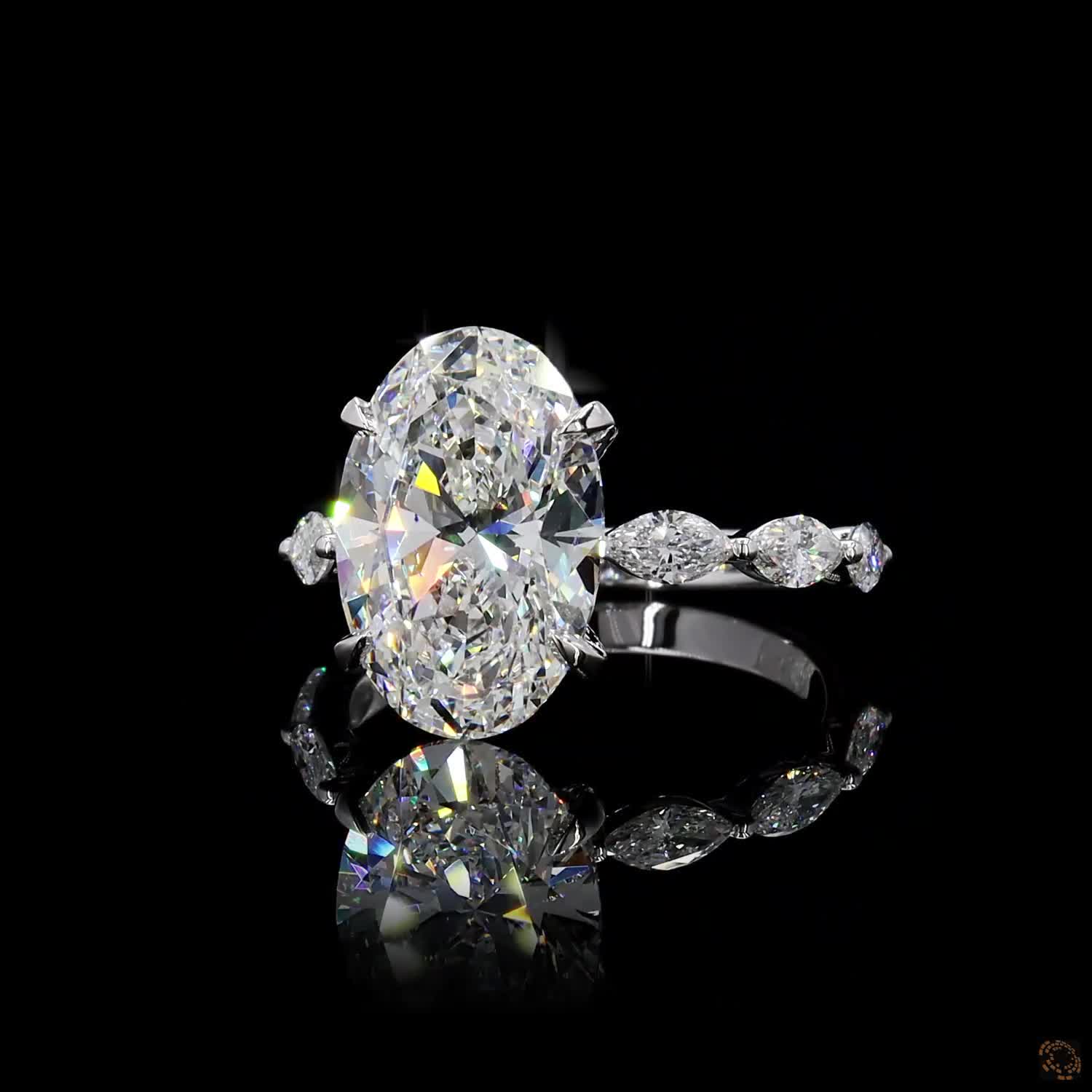 - Center Diamond : 5 Carat Oval Cut Lab Grown Diamond