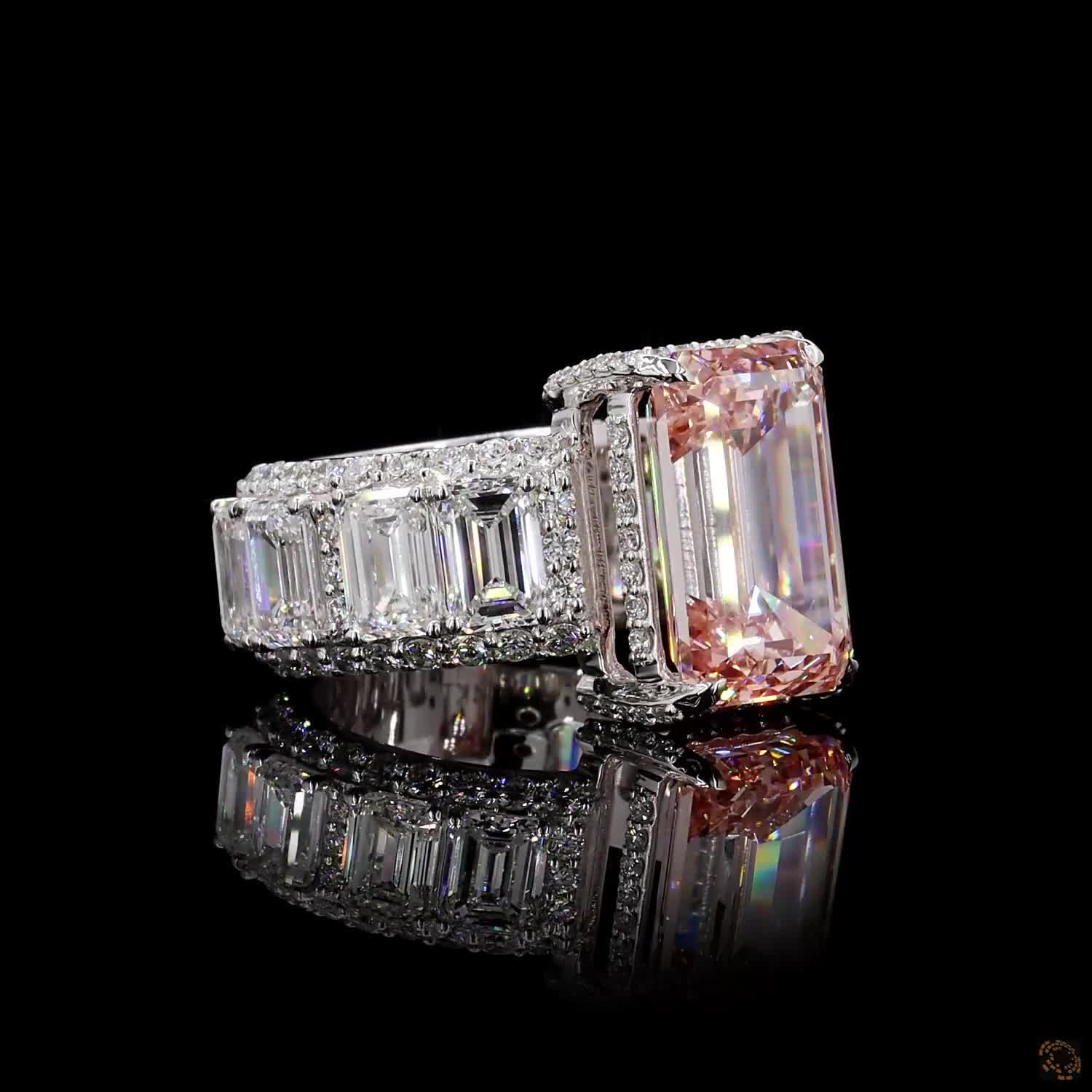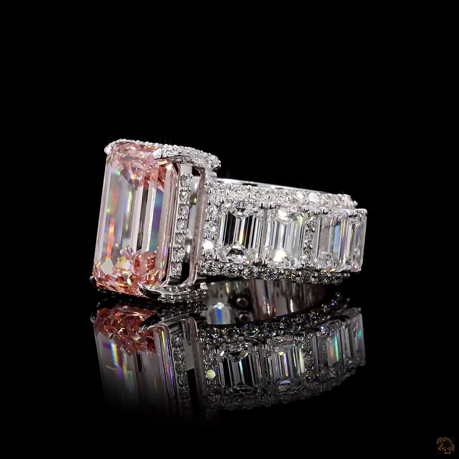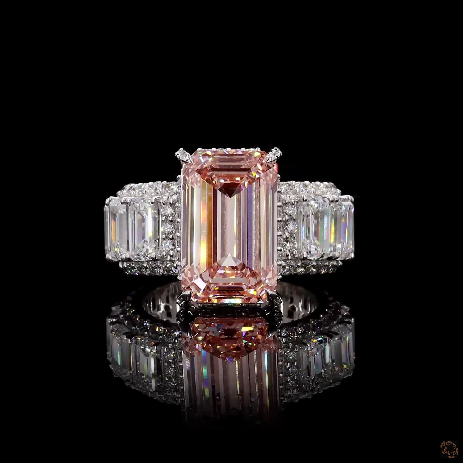 Experience timeless elegance with this stunning 4 Carat Pink Emerald Cut Lab Grown Diamond Ring, featuring a mesmerizing center stone paired with perfectly matched emerald and Round cut side diamonds for a sophisticated, high-end look.
