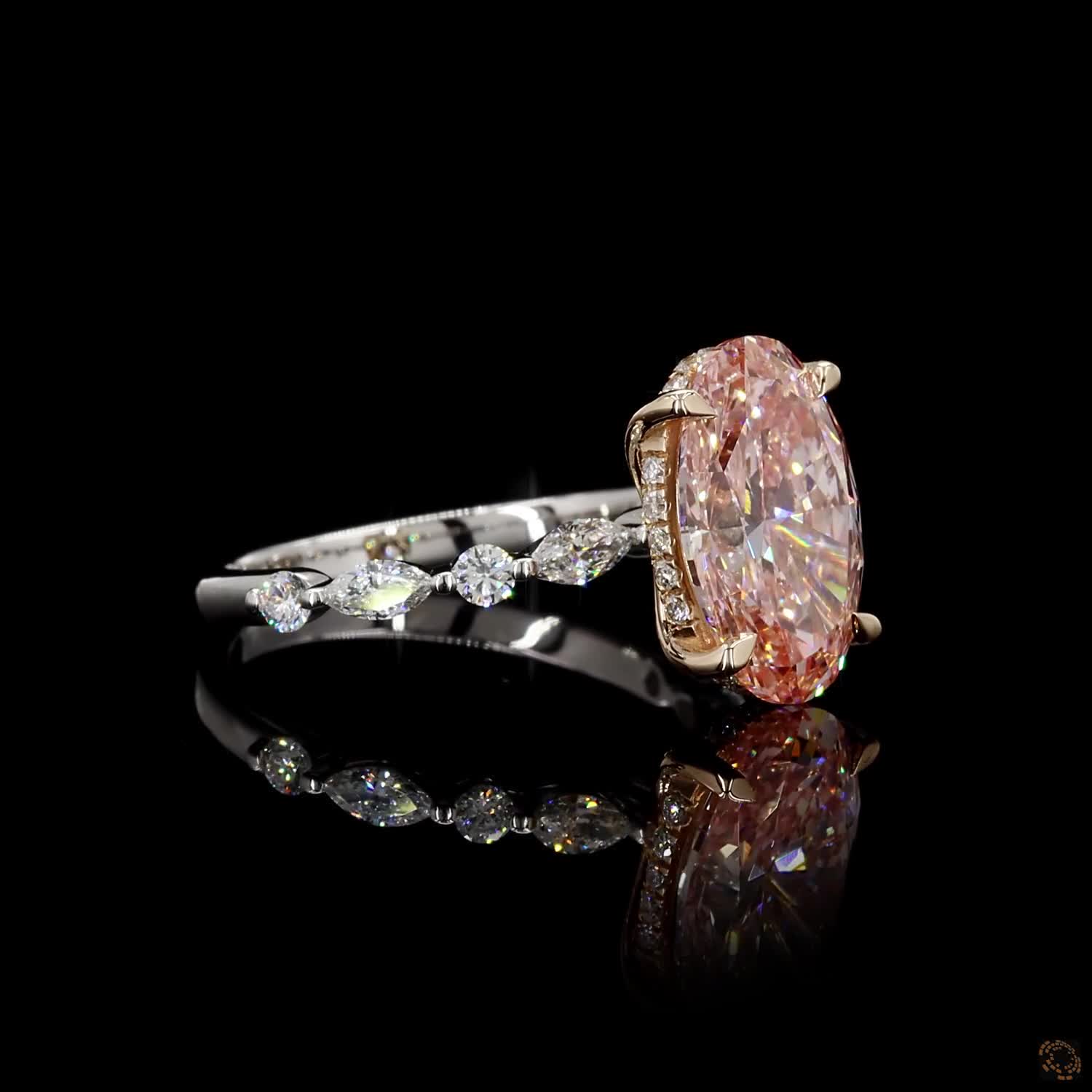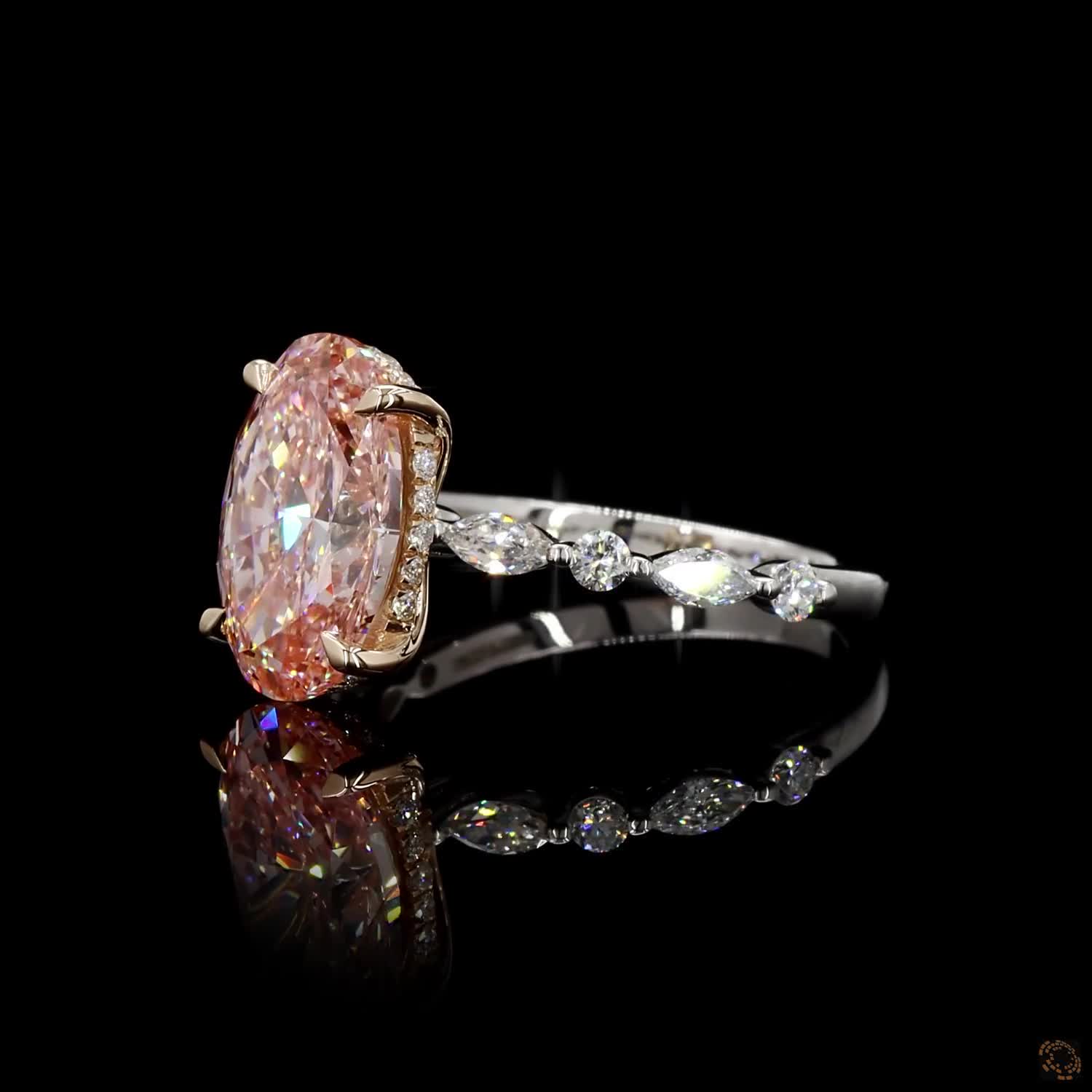 Turn heads with this breathtaking 6 carat oval-cut pink lab-grown diamond ring, designed for those who love bold elegance and timeless beauty. The soft blush tone of the center stone sparkles brilliantly, making it a perfect symbol of romance and individuality.